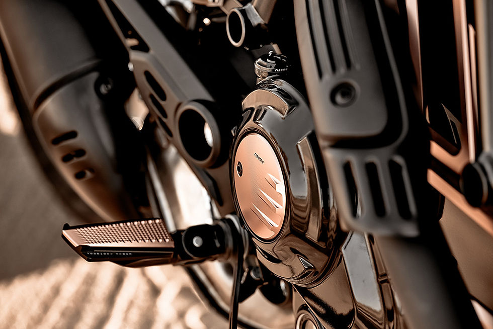 Cada detalhe estudado pela Rizoma para esta Ducati Scrambler, começando no acabamento Metal Rose, faz parte de uma visão global em que a força e importância dos acessórios e detalhes cromáticos individuais completam e amplificam a aparência da moto e a ligação com o seu condutor, resultando num design final de grande impacto. O conceito de autoexpressão, que sempre foi um valor fundamental da Ducati Scrambler, assume um significado diferente no caso desta Rizoma Edition, tornando-se um elemento que completa, comunica e melhora o estilo de vida do seu proprietário.