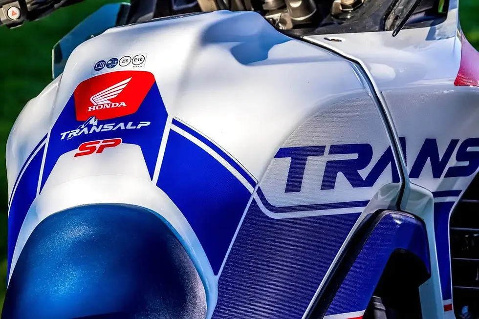 O guarda-lamas dianteiro apresenta o mesmo design, com o logótipo SP em branco sobre um fundo vermelho. Destaque ainda para a decoração da parte central do depósito de combustível, com o logótipo da asa da Honda em branco sobre fundo vermelho e o nome do modelo Transalp ao lado da nomenclatura SP.