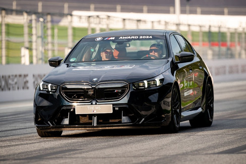 Após a apresentação, os dois pilotos de MotoGP, Aleix Espargaró e Raúl Fernández, tiveram a oportunidade de ver de perto o novo BMW M5 durante algumas voltas ao Red Bull Ring.