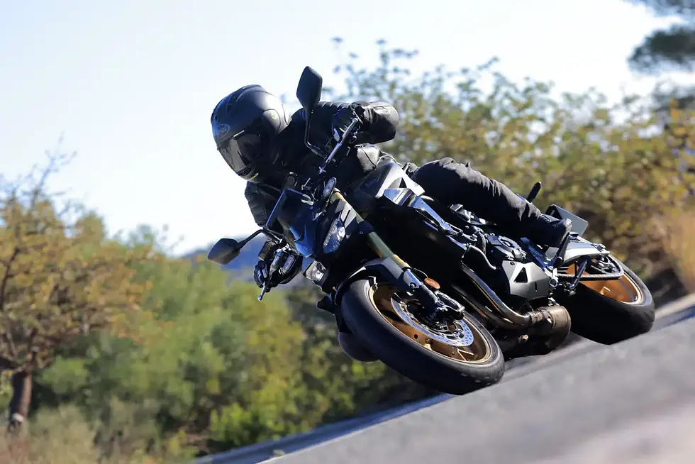Também compartilham discos de travão de 310 mm, mordidos por pinças radiais de 4 pistões, que no padrão são Nissin, enquanto no SP são magníficos Brembo Stylema. Os discos são montados em aros com raios em forma de Y, de forma que 5 raios tocam o cubo e 10 raios o perfil do aro. Os pneus montados são duas opções: Bridgestone Battlax Hypersport S22F (os que pudemos testar) ou Dunlop Sportmaxx Roadsport 2, sempre nas medidas 120/70-17 e 180/55-17.