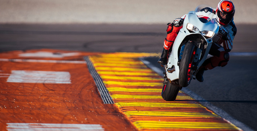 Se construíssemos uma fórmula a partir de dois valores, esforço do piloto e tempo por volta, é muito provável que a pequena Ducati ganhasse à sua irmã mais velha Panigale 1299. Para se andar rápido com a 1299, é quase obrigatório tirar um diploma no controle de deslizamento em aceleração, porque sem um certo tacto, o DTC vai trabalhar incansavelmente e os tempos rápidos não aparecem. Ao contrário, a 959 consegue transmitir energia ao solo com menor dificuldade, por isso se ficam muito mais com a sensação de uma moto de pista. E com a vantagem extra da 959 ter o pivot do braço oscilante mais baixo 4 milímetros, a sua capacidade de tração também melhorou.