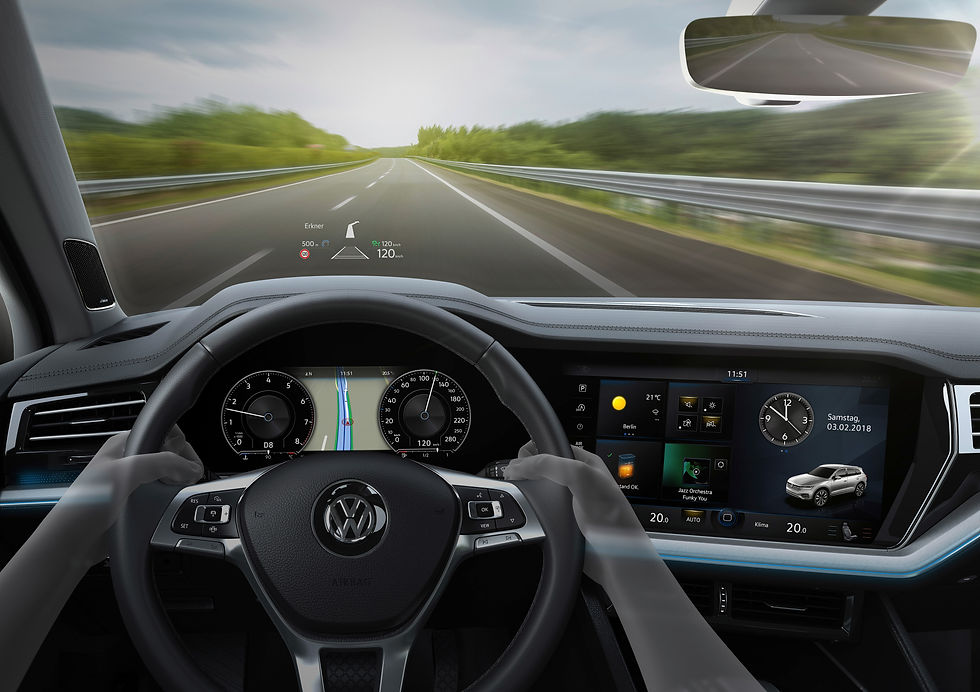 A Volkswagen apresenta no Touareg, pela primeira vez, o totalmente digitalizado Innovision Cockpit. Aqui, os instrumentos digitais (Digital Cockpit com ecrã de 12 polegadas) e o sistema de infotainment Discover Premium (com ecrã de 15 polegadas) fundem-se para formar uma unidade digital de funcionamento, informação, comunicação e entretenimento, que quase não precisa de botões ou comandos convencionais. Sempre ligado, oferecendo controlo intuitivo e máxima personalização – com o Innovision Cockpit, o Touareg proporciona já hoje o modelo para o interior digital de amanhã.