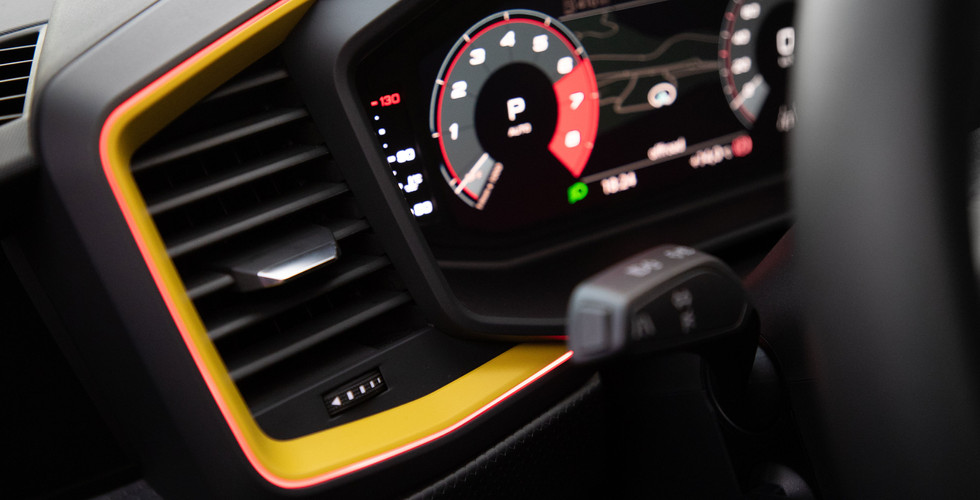 Interior com design novo e com o ecrã e os difusores da ventilação com aparência de vidro preto (lado do passageiro). O design emotivo e personalizável, com comandos e o ecrã MMI touch orientados para o condutor, completa-se com um conjunto de instrumentos totalmente digital: ecrã de alta resolução de 10,25 polegadas e volante multifunções