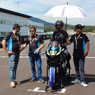 Os pilotos Luis Metelo, Ricardo Almeida e Pedro Flores e os incansáveis comissários do Moto Clube do Estoril